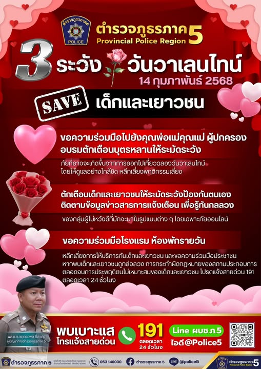 3 ระวัง ในวันวาเลนไทน์ 13 กุมภาพันธ์ 2568 โดย Admin / ประชาสัมพันธ์,ข่าวประชาสัมพันธ์ สภ.เกาะคา แจ้งประชาสัมพันธ์3ระวัง ในวันวาเลนไทน์ #valentine #สถานีตำรวจภูธรเกาะคา FacebookFacebookXXLINELine